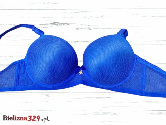 Biustonosz push up miseczka D. Gładki chabrowy biustonosz z push upem w kształcie ręki. Rozmiar miseczki D. Ramiaczka odpinane. Zapięcie pod biustem elastyczne, gładkie, szerokie. Zobacz pełną ofertę Biustonosze D